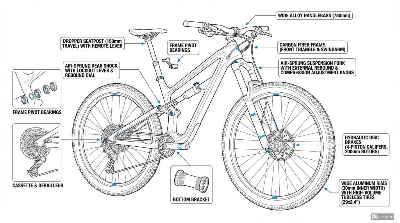 Full-suspension trail bikes add a rear shock and linkage system that dramatically improves traction and comfort. On rough terrain, the rear wheel stays in contact with the ground more consistently, increasing control during braking and cornering.